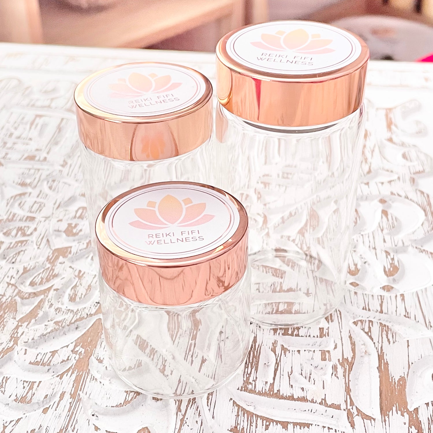 These beautiful jars and their contents have been energetically cleansed and activated, right here at Reiki Fifi Wellness.